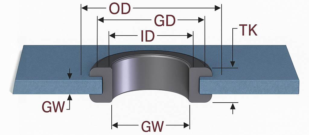 Rubber grommets are used to protect wires, cables, and tubing as they pass through cutouts in panels, bulkheads, and machinery. This AI grommet AI-2564 is designed for panel protection and vibration damping in industrial and aerospace environments. Dimensions are provided in both fractional and decimal inch formats to support engineering drawings, MRO, and procurement workflows.